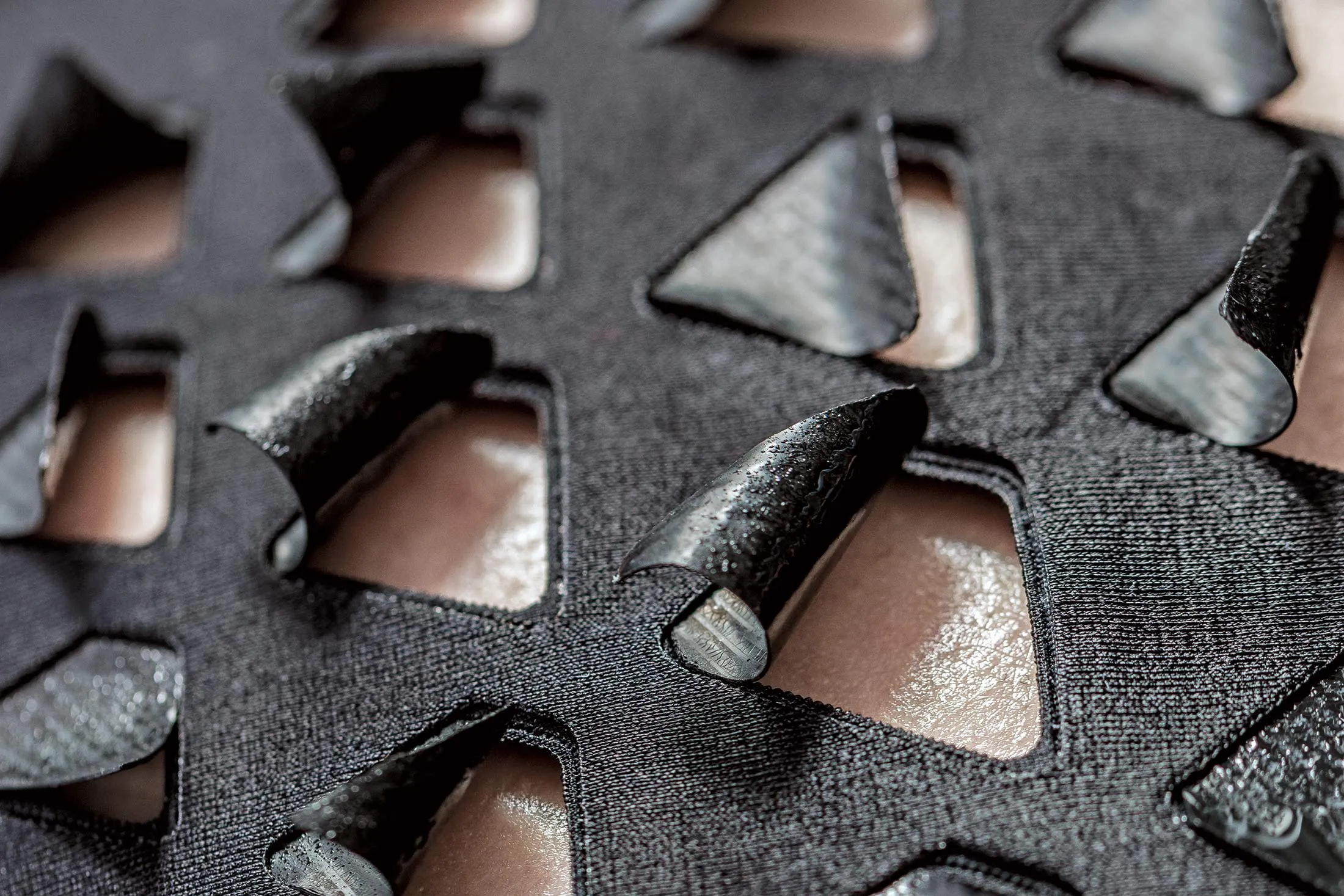 形式与功能一种名为bioLogic的新材料会随着湿度变化而改变形状,因此运动员的衬衫可以在穿着者开始出汗时打开背部的通风口。