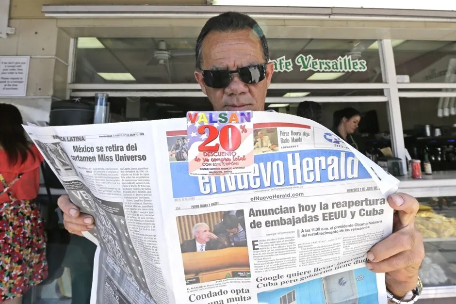 在小哈瓦那的维尔赛咖啡馆外,一名男子正在阅读《迈阿密先驱报》的西班牙语报纸。阿兰·迪亚兹 / 美联社图片迈阿密——西班牙语是这里日常生活的重要组成部分。在市中心的餐馆里,身穿西装的男子用西班牙语点咖啡和鸡蛋,然后前往他们在布里克尔大道的工作。晚上,年轻的专业人士在户外的温伍德酒吧品尝手工鸡尾酒,使用他们父母的母语闲聊。甚至在前40名电台的DJ也以一种明显的迈阿密风格说话,轻松地在英语、西班牙语和当地俚语之间切换,然后播放最新的热门歌曲。
