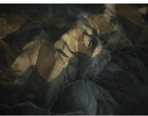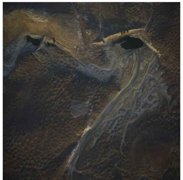 海因塞特从直升机拍摄,没有后期数字处理,他以抽象的眼光构图这些主题。烧焦的树木投下的阴影变成了一种黑色的平行伤痕图案。干枯的农田近看像蜥蜴的鳞片。海因塞特表示,画廊观众常常惊讶地发现他们所看到的是照片,而不是画作——这使得这些图像的美丽更加令人震惊,也更加可怕。