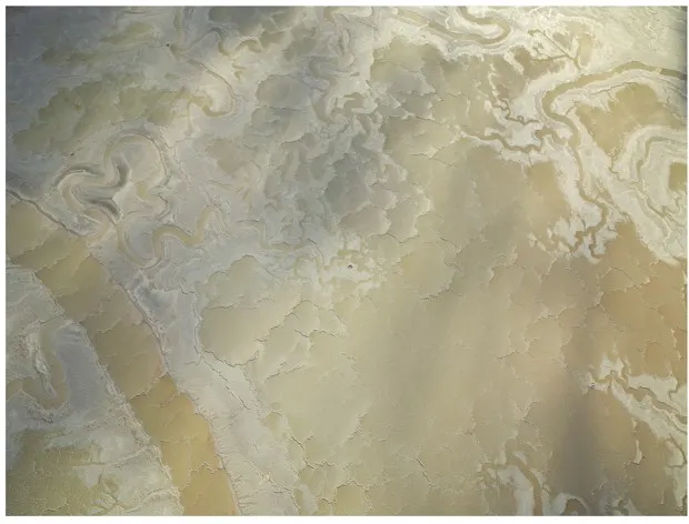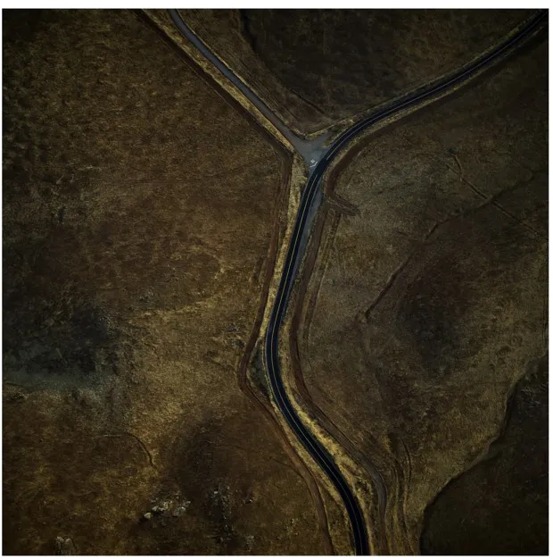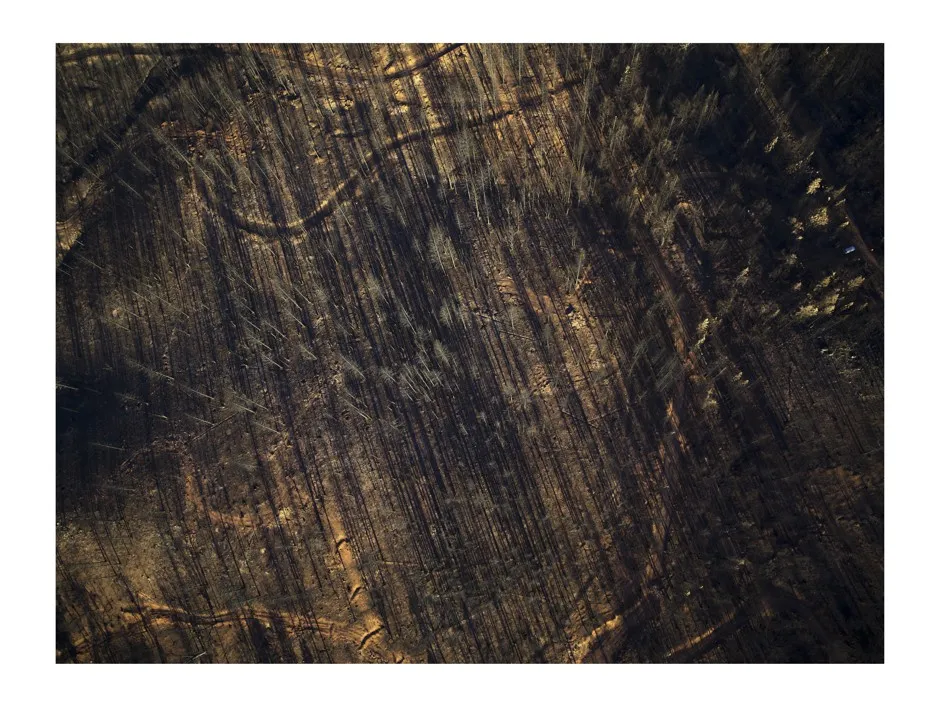 海因塞特从直升机拍摄,没有后期数字处理,他以抽象的眼光构图这些主题。烧焦的树木投下的阴影变成了一种黑色的平行伤痕图案。干枯的农田近看像蜥蜴的鳞片。海因塞特表示,画廊观众常常惊讶地发现他们所看到的是照片,而不是画作——这使得这些图像的美丽更加令人震惊,也更加可怕。