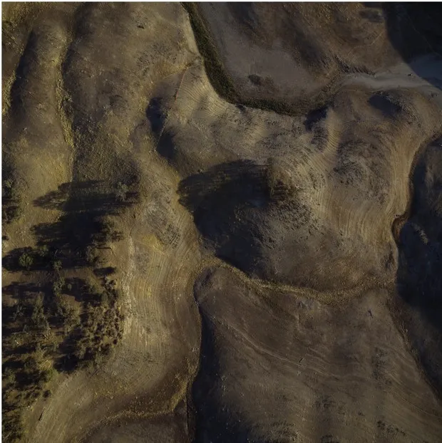 这种二元性正是这位出生于德国、现居加利福尼亚的摄影师托马斯·海因瑟在他目前在旧金山的16号画廊展览的标题中所表现的。“减少”是2015年拍摄的一组航拍照片。它们捕捉了加利福尼亚在干旱、野火和人类利益影响下的最脆弱状态。