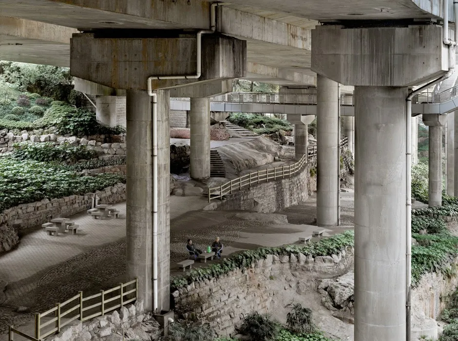在为她的书拍照时,Erlacher注意到了一些地区趋势。例如,在重庆,这些隐藏的空间里有长椅、公园和茶馆,老年人可以在这里放松。而在欧洲,年轻人通常占据位于巨大基础设施阴影下的游乐场和滑板公园。