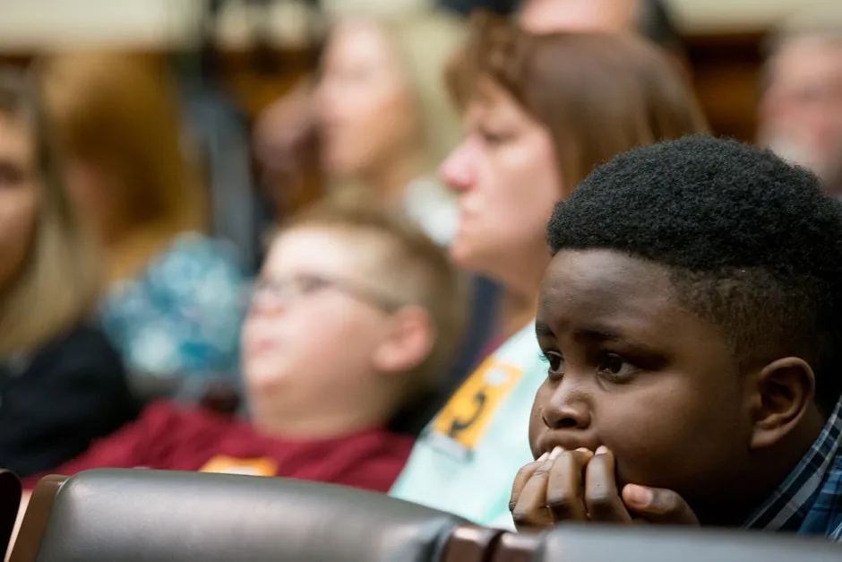 弗林特居民杰隆·特里,10岁,右侧,和其他弗林特居民在弗林特水危机的众议院监督和政府改革委员会听证会上坐在观众席中。美联社照片/安德鲁·哈尼克路易·布雷泽尔的小儿子有自闭症,她说他在过去六个月里的学习障碍变得更严重。李安娜·沃尔特斯的5岁双胞胎之一最近被诊断为多动症。梅丽莎·梅斯说她17岁的儿子,一名全A学生,最近抱怨脑雾和记忆丧失。