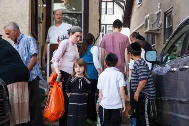 在米德伍德,家庭们在星期五排队领取安息日晚餐的面包。对于生活在贫困中的家庭来说,保持犹太饮食法是很困难的。食品往往更贵,而且犹太食品储藏室的数量有限。乔伊·奥洛克林“这一切归结为一种平衡,”奥洛克林说。“这些人都计算过,值得花费旅行时间和等待时间来获取这些食品袋,这说明了什么?”她补充说,这些食品袋最初是作为危机后人们的应急物资,比如房屋失火后的救助。现在,它们成为人们在管理每月资源时始终考虑的因素。危机已成为常态。
