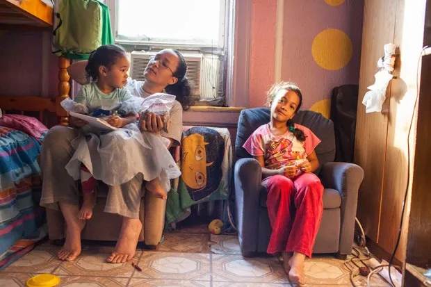 五岁的艾米莉·迪亚克在里士满山的一个食品救助站等候她的母亲购物。纽约市四分之一的儿童没有足够的食物;她的母亲不想让艾米莉和她的兄弟们成为这个统计数字的一部分,因此他们搬到了乔治亚州的马里埃塔。乔伊·奥洛克林