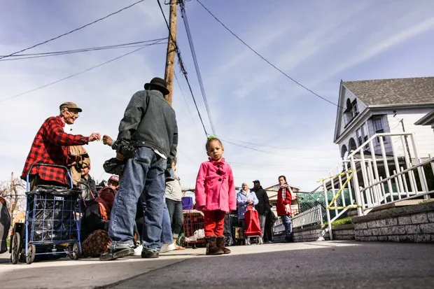 食品救助站讲述了一个复杂的故事。O’Loughlin说,有人拥有高级学位;有的是学生或艺术家。还有交通警卫、公园部门员工、门卫、家庭健康助手。还有一些长期失业的人;40多岁和50多岁的人曾在广告或中层管理岗位工作,但现在找不到工作。施耐德说,人们认为排队的人都是失业的。但五分之一的人在工作,许多人有不止一份工作。这只是还不够。
