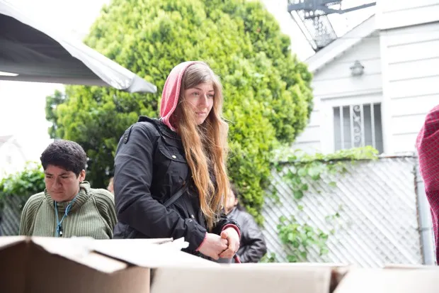 周围的社区时尚而昂贵。当地人带着狗在汤普金斯广场公园散步,品尝精心制作的卡布奇诺。通勤者骑上城市自行车,飞速前往工作。慢跑者穿着设计师装备经过。如果他们注意到队伍,他们并不承认。
