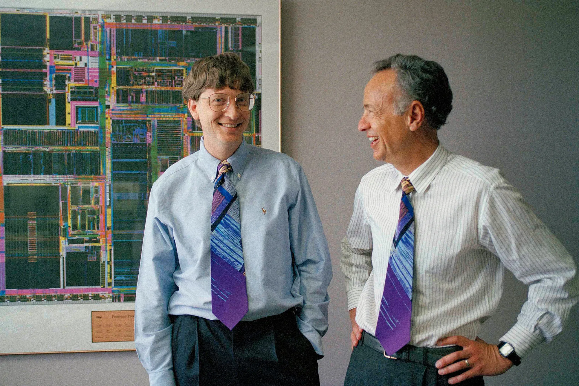 比尔·盖茨与格罗夫在华盛顿州雷德蒙德的微软总部,1993年5月13日。