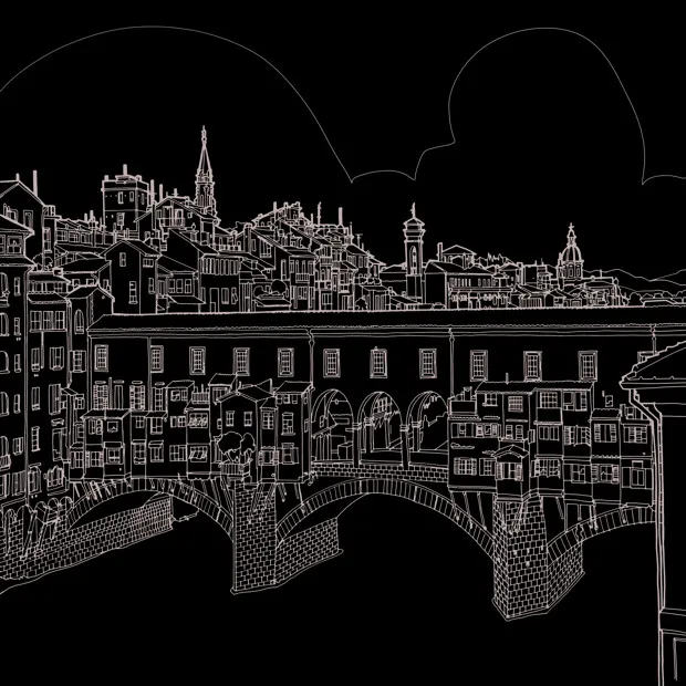 意大利佛罗伦萨的老桥。麦当劳如果你喜欢为复杂的图案上色,这本60页的书还包括许多黑白曼陀罗,等待你的铅笔。