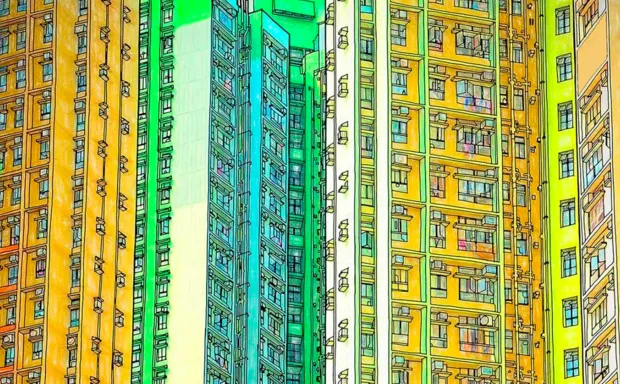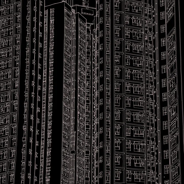 史蒂夫·麦克唐纳德为他的香港住宅楼线条画上色的版本。麦克唐纳/编年书籍