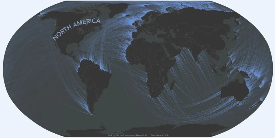 “没有拿出一个地球仪和一根绳子可能有点难以置信,”伍德拉夫在邮件中说,“在制作这些地图时,我确实做过好几次!”