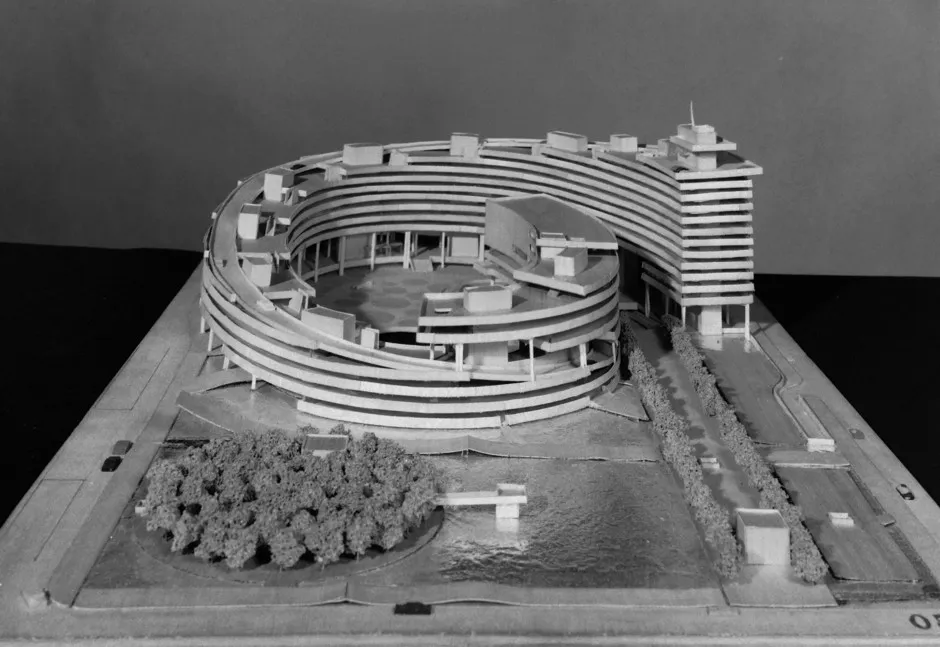维尔乔·雷维尔,芬兰。熊猫收藏,加拿大建筑档案馆这个曲线的双塔综合体——被称为纳森·菲利普斯广场——于1965年完工。它立刻受到欢迎,并获得了加拿大媒体的赞誉。“人们被时代的精神所感染,感受到‘哇,我们现在在国际舞台上,我们有一座将成为城市标志性建筑的建筑’,”卡佩洛斯说,他仍在寻找一些活着的参赛者,以便为509份提交作品撰写更大的作品。