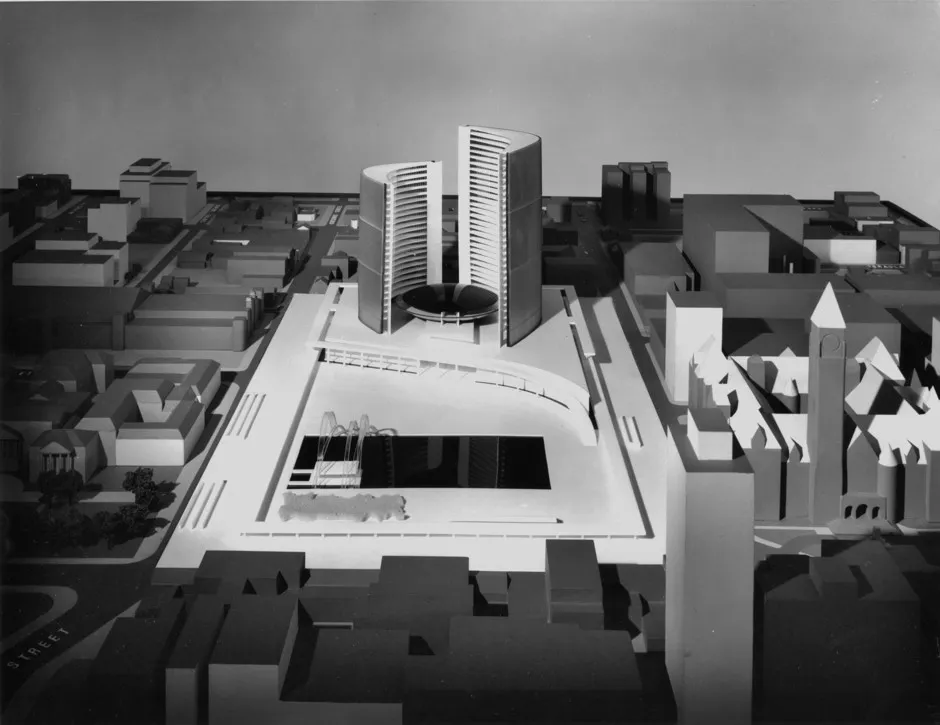 熊猫收藏,加拿大建筑档案馆1955年,内森·菲利普斯当选市长标志着多伦多的象征性转变。菲利普斯通过坚持为新市政厅举办国际设计竞赛,留下了持久的遗产。