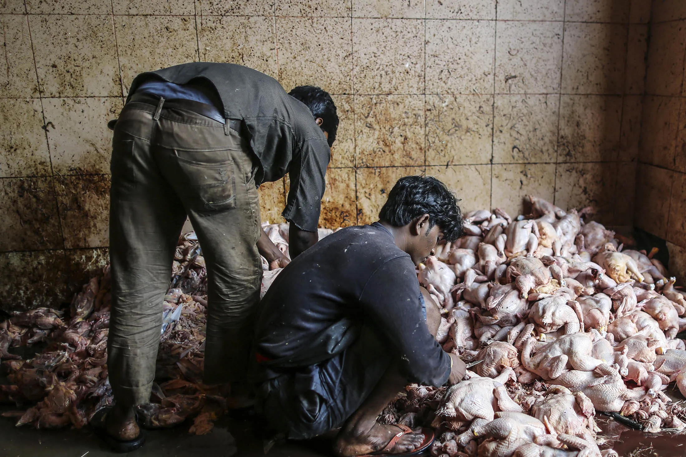 屠夫在孟买的克劳福德市场准备鸡肉。印度的鸡肉消费量现在是1985年的14倍。
