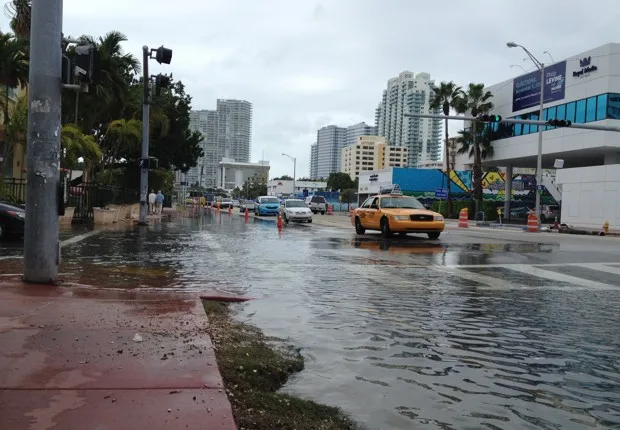 2013年11月5日,在佛罗里达州迈阿密海滩,阿尔顿路和第十街发生洪水。路透社### 气候变化的前线