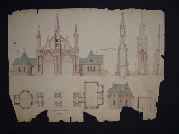 墓地拱门的草图。格林伍德墓地现在,格林伍德也将效仿。最近获得的来自国家人文学科基金会的4万美元赠款将使墓地能够召集一组专家,帮助确定数字化档案以供公众使用的最佳实践。