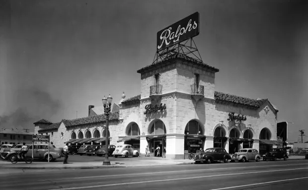 埃尔塞拉诺市场,建于1929年,耗资25,000美元,出售水果、蔬菜、杂货,并包括一个熟食店和一个花店。洛杉矶公共图书馆这些情况为拉尔夫斯杂货公司铺平了道路,该公司已经拥有少量的自驾杂货店,开设了全国第一家超市:一栋独立建筑(配备了充足的停车空间),越来越迎合了正如朗斯特斯所写的,“寻求各种精美商品以及库存商品的精英贸易。”第一家拉尔夫斯超市也远离了城市核心,进入了快速发展的西南区,该地区一直被视为中产阶级住宅开发的目标。