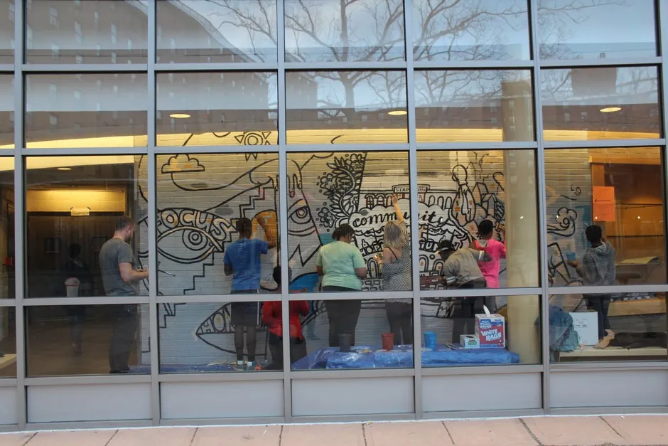 布鲁克林汤普金斯住宅的壁画设计细节。Groundswell