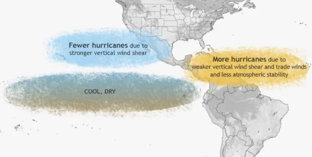 气象预报员预计厄尔尼诺将在春季或初夏消亡。拉尼娜通常会跟随厄尔尼诺,但并不总是如此,这种可能性促使国家海洋和大气管理局昨天发布了“拉尼娜观察”的预警,针对晚夏或初秋。如果它确实出现,这意味着大西洋的风切变会减弱——即海面上方数千英尺的风向和风速变化——这将使飓风更容易形成。