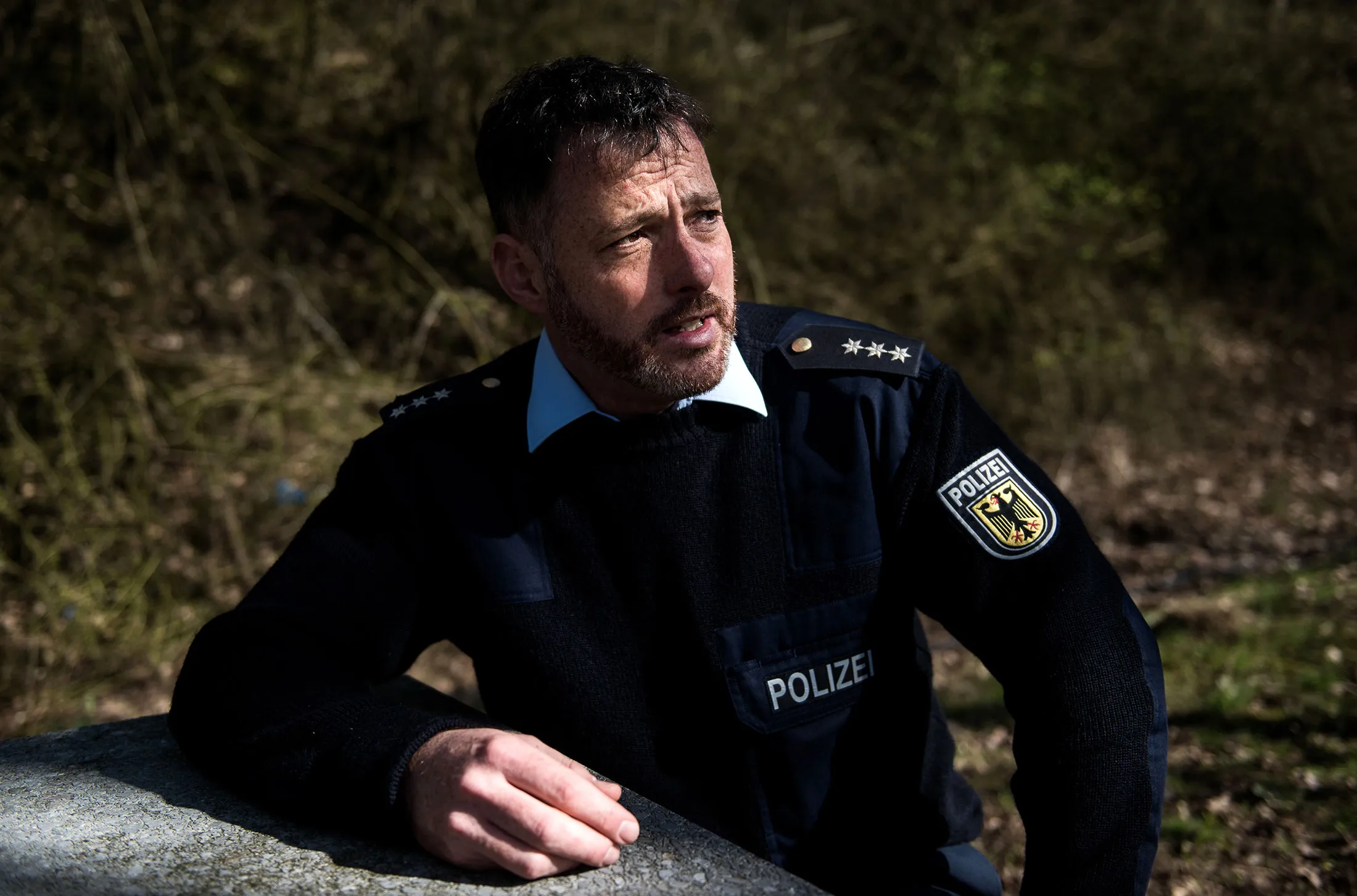 德国警察专员卡斯滕·埃伯哈特在帕绍的一个检查点。