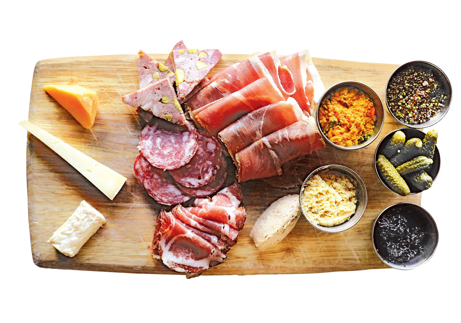 Rapp Session318 East Grace St., Richmond, Va.rroysters.com表兄Ryan和Travis Croxton自2001年以来一直在切萨皮克湾养殖Rappahannock River、Olde Salt和Stingray牡蛎;他们在二月份开设了80个座位的Rapp Session,作为一个提供和销售他们的收成以及其他当地产品的地方。“很多了不起的供应商只卖给厨师,因为他们没有处理零售的基础设施,”Ryan说。“我们在给这些人一个店面。”受到曾祖父经营的乡村商店的启发,市场出售大米、豆类、Marcona杏仁、自制腌菜和两种方式的牡蛎等主食。你可以购买生的和剥壳的以便在家准备($18/品脱),或者在厨师Dylan Fultineer的非常规牡蛎卷中享用($15):它们被水煮并塞入一个带有泡菜、绿色沙司和塔塔酱的面包中。 Centrolina974 Palmer Alley, Washington, D.C.centrolinadc.com厨师Amy Brandwein的时尚意大利市场和osteria出售欧洲进口商品,如卡拉布里亚辣酱和干意大利面,以及来自地区农场的新鲜鸡蛋和酸奶。但Centrolina的酸苹果果酱($6),是用当地的粉红女士和格兰尼史密斯苹果在店内制作的,是你想要拿起并涂抹在烘焙早餐食品(或任何其他果酱载体上的东西)。在餐厅,Brandwein用它为咸味、烟熏菜肴增添甜味,如木烤猪肉($29)和布鲁塞尔芽菜($10)。 Suprema Provisions305 Bleecker St., New Yorksupremaprovisions.com这家格林威治村的酒吧提供一系列泛欧洲菜肴,特色是精心挑选的食材,如Ramón Peña沙丁鱼——“世界上最好的,”老板Joshua Wesson说,是西班牙顶级厨师的最爱,因其传统的制作方式和丝滑的口感。他在餐厅中将其作为开胃菜与香蒜酱(切碎的柠檬皮、大蒜和香菜)和帕尔马干酪一起提供($10),并按罐出售($14.50)。 Formento’s & Nonna’s925 W. Randolph St., Chicagoformentos.comFormento’s于今年一月在西环区开业,模仿1950年代经典意大利餐厅:想象红色皮革长椅、自由流动的马提尼和正宗的周日酱——用烤猪颈骨、意大利培根和甜茴香香肠炖煮的红酱——配上自制的通心粉,顶部放有新鲜打发的里科塔奶酪和肉丸($23)。或者你可以在邻近的三明治店Nonna’s(以老板John Ross的祖母命名)购买一罐($9.50)。 小吃推荐传统的肉类和奶酪拼盘得到了升级