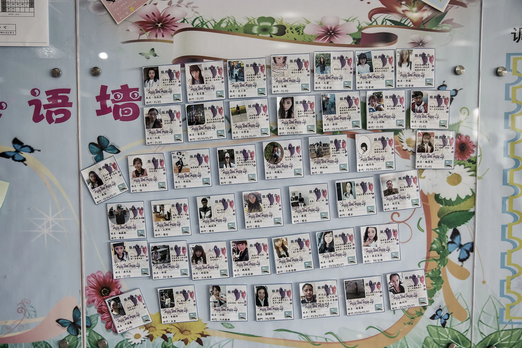 员工的照片挂在员工服务中心的墙上。摄影师:Qilai Shen/Bloomberg“所有企业都在调整薪资、福利和住房,”中国劳动关系学院的劳动法教授姜颖说。“工人对法律的意识增强,这推动了工厂的改善。”