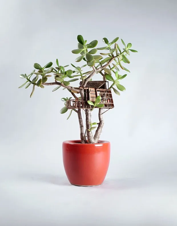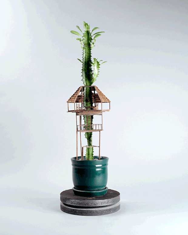 艺术家杰迪亚·科尔温·沃尔茨为室内植物创作微型精致结构 - 彭博社