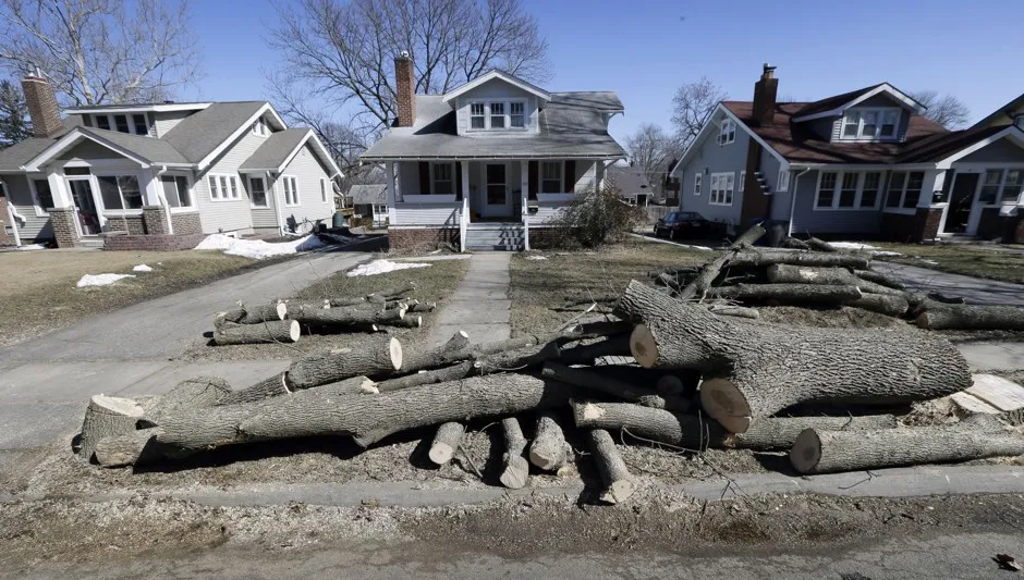 当枯死的树木位于他们的财产上时,个人和家庭也必须付出代价。托里斯第一次发现翡翠灰烬甲虫危机是在她位于辛辛那提的后院,一棵45英尺高的树倒下了。她了解到这是一棵灰烬树,它被来自亚洲的虫子啃噬,移除它的费用为1500美元。她很幸运——这棵树没有伤到任何人,她的保险公司覆盖了大部分费用。