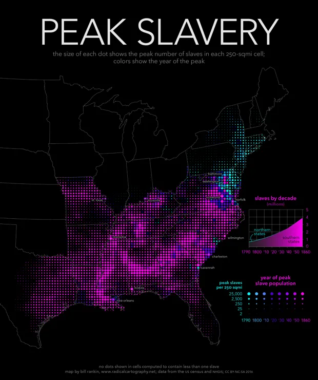 比尔·兰金尽管在1865年被废除,但美国的奴隶制仍在被制图师绘制,他们在寻找 新方法来探讨这一主题**。** 最新的努力来自历史学家和制图师比尔·兰金。