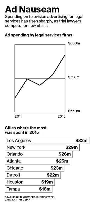 底线: 客户竞争推动了律师广告支出的增加,2015年达到了8.23亿美元。