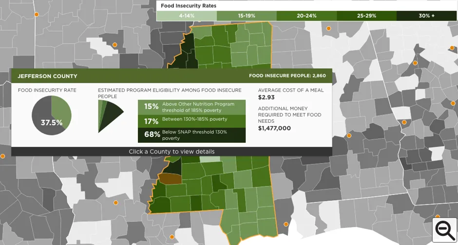 美国饥饿救助组织如果用户点击该州,地图将显示每个县的详细信息。以下是杰斐逊县的资料: