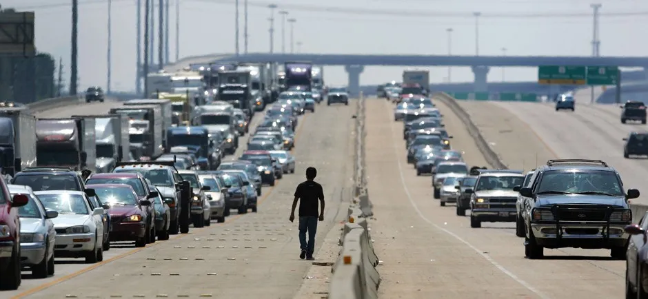 一个男人在北休斯顿的高速公路上行走。路透社/卡洛斯·巴里亚如果交通基础设施是一个国家的连接组织,那么美国在切断自身部分方面表现突出。