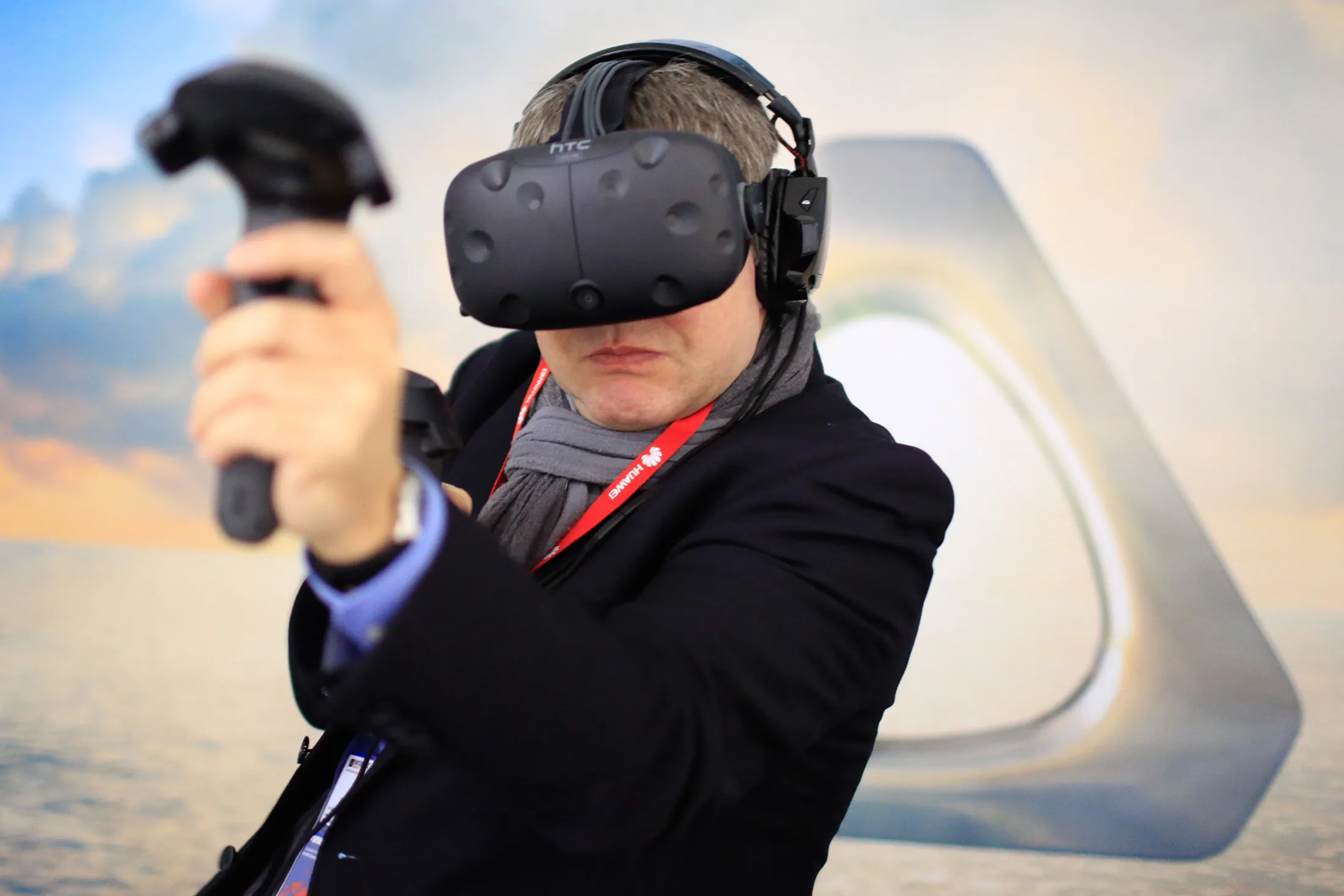 摄影师:Eric Risberg/AP Photo5. Vive VR****价格: $800你需要: 一台高性能游戏电脑。Vive 推荐像 HP Envy 这样的电脑,价格为 $999。可用性: 已在售但需等到六月才能发货详情: HTC 和视频游戏开发商 Valve 合作制作了第一波头戴设备中最具雄心的产品。大多数头戴设备要求佩戴者保持静止,但 Vive VR 设计为可以在行走时使用。它还包括手部追踪器,因此你可以通过自然动作控制游戏;在 Audioshield 中,你用手来阻挡即将撞击你身体的球,同时随着音乐跳舞。通过 Steam,Valve 的 PC 游戏平台,还有数十款其他游戏可供选择。如果你想买: 你想要市场上绝对顶尖的产品,并且愿意为此付出代价。