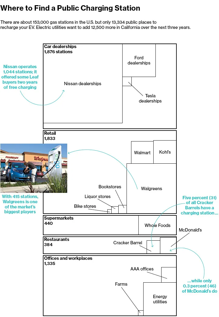 直到2014年,加州的公用事业公司实际上被禁止进入汽车充电市场。监管机构担心他们会利用垄断和保证利润来压制私人竞争。两年前,当独立运营商显然无法快速建立充电站时,州公用事业监管机构放宽了规则。“我们正接近必须满足的目标的真正拐点,”前州公用事业监管委员会委员、现为旧金山E3能源咨询公司的合伙人Nancy Ryan说。“公用事业公司可以成为电动车基础设施的巨大资金来源。”
