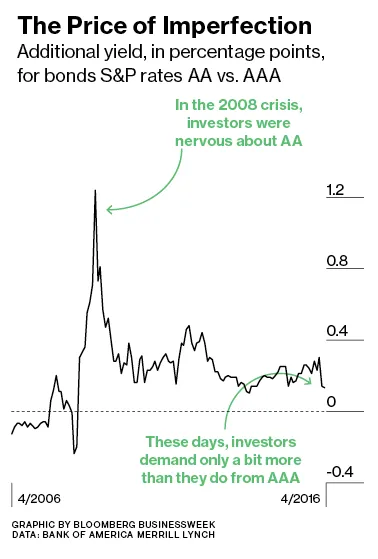彭博社商业周刊马斯克在煽动性的特朗普集会上庆祝胜利没有隐士。寻求庇护者占据了拜登承诺关闭的监狱美国正在用寻求庇护者填满臭名昭著的前监狱《狗人》电影来拯救儿童图书业务AAA评级是资产负债表完美的象征。投资者接受AAA评级公司债券的较低利率,因为它们强大的财务资源意味着几乎没有风险会错过付款。标准普尔认为三A级借款人具有“极强的履行财务承诺的能力”,而双A级借款人只有“非常强的能力”。竞争对手穆迪投资服务公司的最高评级是Aaa。
