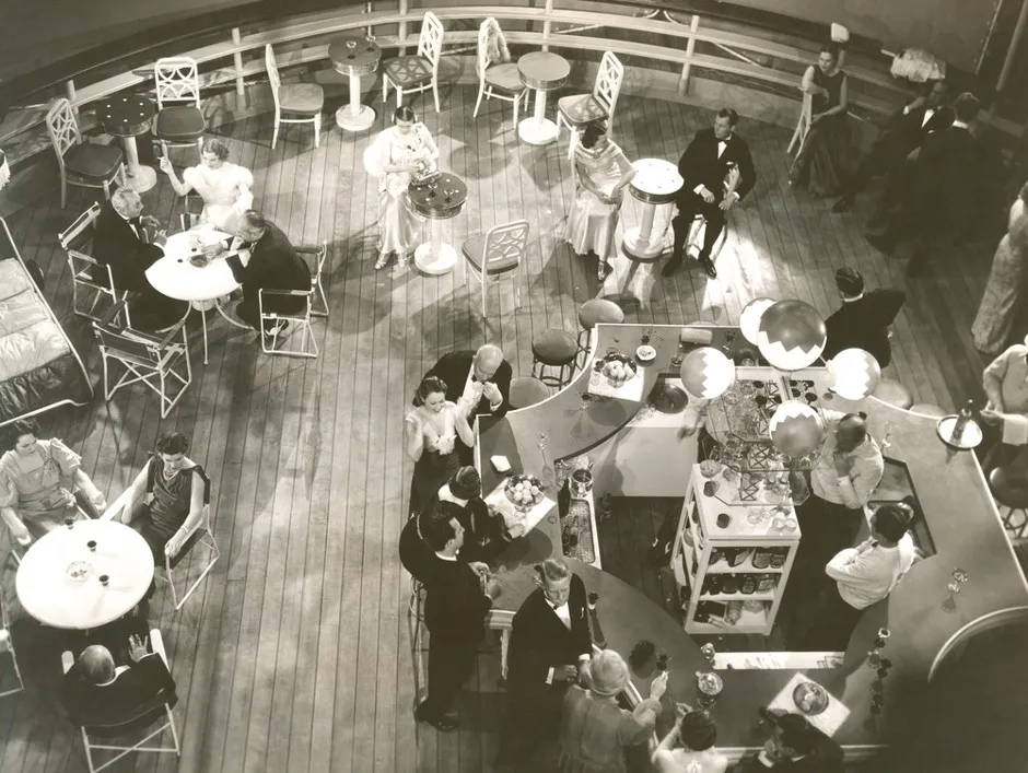 一个1930年代的鸡尾酒酒廊。埃弗雷特收藏/Shutterstock.com如果你在1936年是加利福尼亚的一名公路官员,你可能想要庆祝一下。金门大桥的建设已经进行三年;它将在1937年开放供公众使用,减少这个不断增长的城市对渡轮的依赖。美国州公路官员协会在哪里举办派对更合适呢?