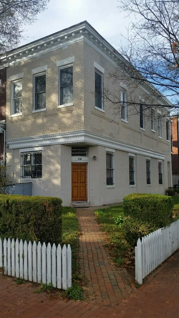 34 14街,东北。“前零售的证据:主要的砖砌现在取代了这个角落住宅中曾经更大的弓形窗。装饰性的悬挑也是填充空间的前零售的标志。由大华盛顿犹太历史协会验证:梅耶·埃迪特·索迪曾在这个空间经营过一家商店。”华盛顿特区 前零售