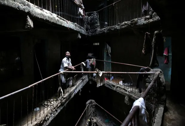 一名男子站在内罗毕马萨雷社区一栋被列为拆除的建筑内。路透社/戈兰·托马塞维奇