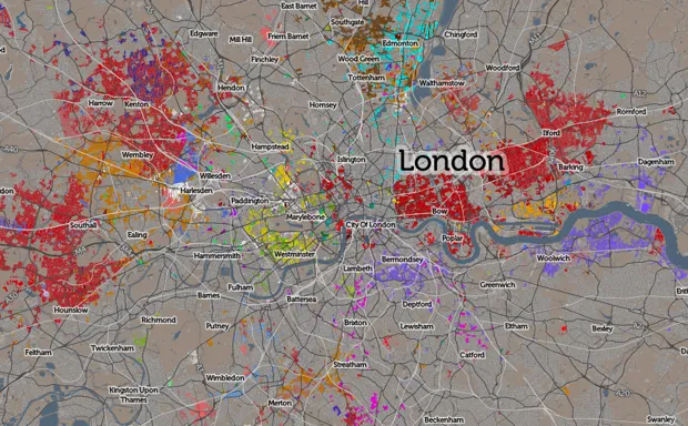 消费者数据研究中心在选举出首位 穆斯林市长后,伦敦的多元文化本月再次成为全球新闻。现在一张新地图显示了城市中许多族群的聚集地。