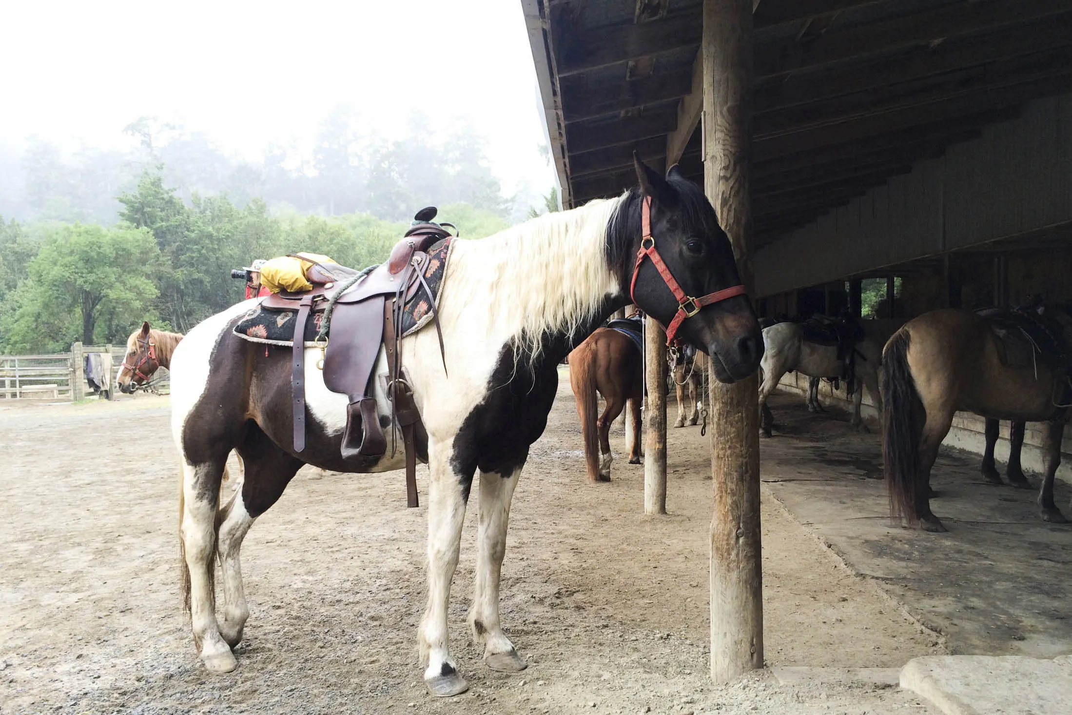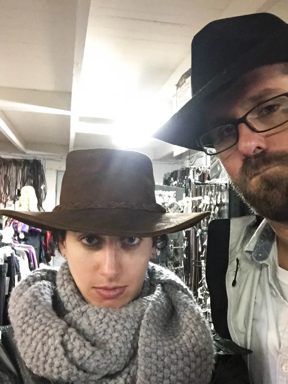 作者和她的男朋友在Pt. Reyes Station的马具店之间换装。