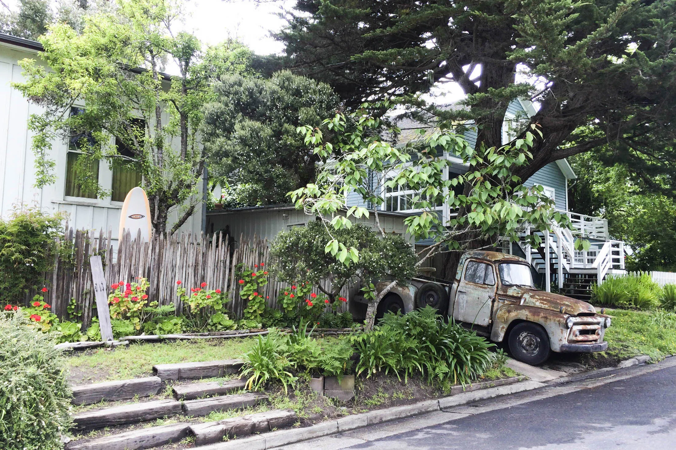 在马林的小镇上,靠近海洋意味着生锈的旧车和快速到达冲浪点。