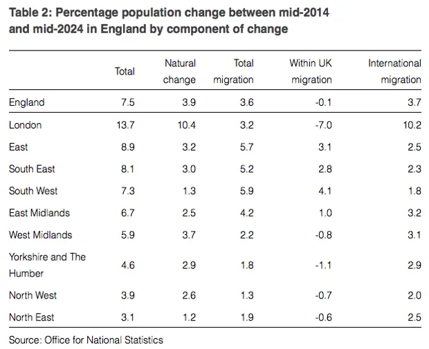 伦敦的增长可能是最引人注目的,但它是整体模式的一部分,显示英格兰的人口集中正在向该国的东南部转移。在东英格兰和东南英格兰,靠近首都的人口将分别增长8.9%和8.1%。进一步向北,情况较慢,但将整个画面描绘成完全悲观是错误的——英格兰没有任何地区实际上会看到人口下降。然而,在这些地区内,仍然有许多北方城市的人口将下降,因为人们在其他地方寻找工作和机会。受影响最严重的将是巴罗因弗内斯和科普兰,这两个位于英格兰西北海岸的失去造船业的区,预计将分别失去4.3%和2.4%的人口。