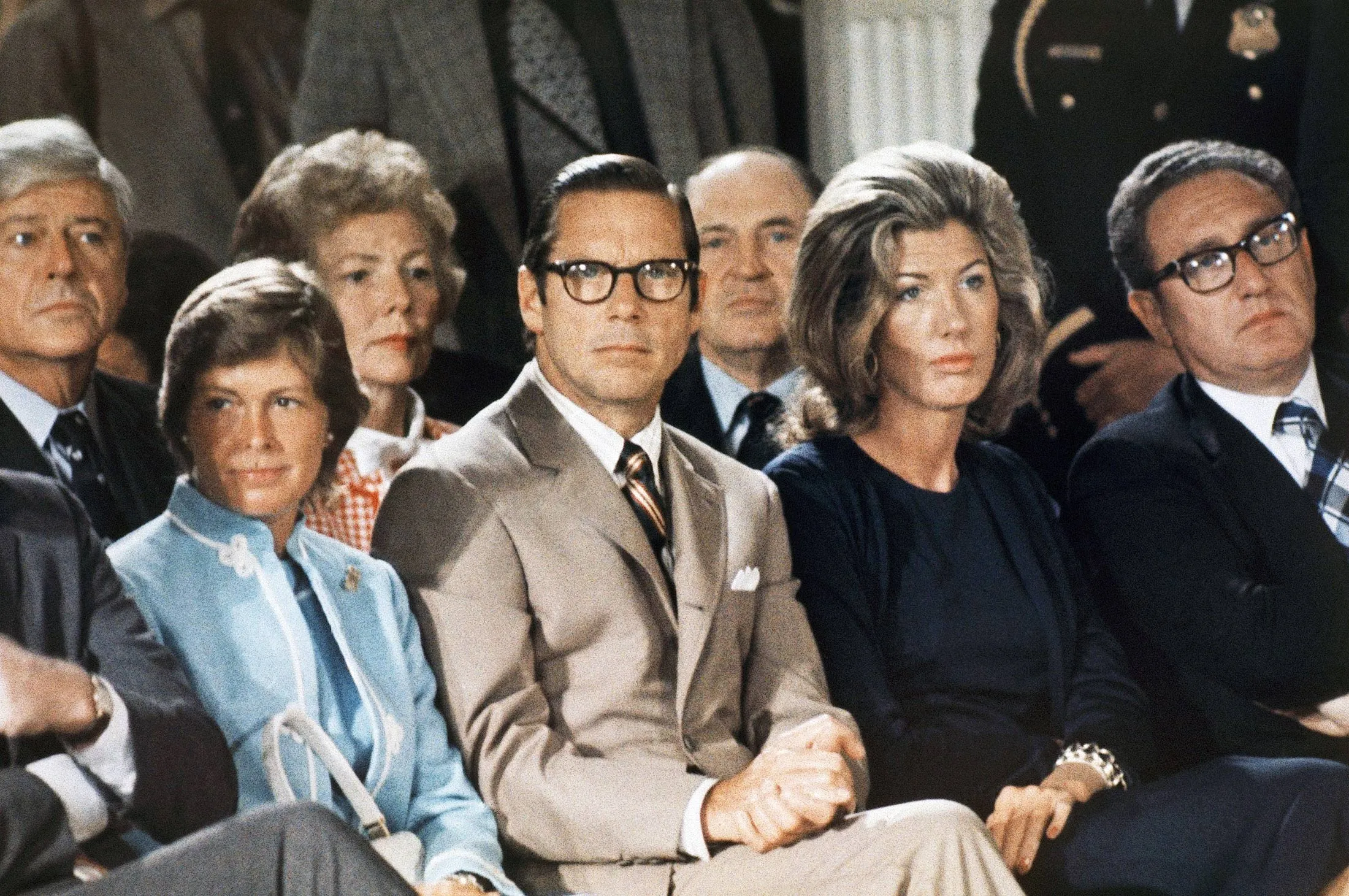 财政部长威廉·西蒙(左)与南希·基辛格和国务卿亨利·基辛格坐在一起,听前总统尼克松在1974年8月9日离开白宫前与他的工作人员交谈。来源:美联社照片乍一看,刚刚担任尼克松能源沙皇的西蒙似乎不适合如此微妙的外交。在被尼克松任命之前,这位来自新泽西的烟民曾在所罗门兄弟公司负责备受推崇的国债交易台。对于职业官僚来说,这位自信的华尔街债券交易员——曾将自己与成吉思汗相提并论——脾气火爆,个性张扬,在华盛顿显得格格不入。在踏上沙特阿拉伯的前一周,西蒙公开抨击当时的密切地区盟友伊朗国王,称其为“疯子”。