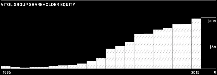 维托尔的财务健康并不像大型石油公司那样与油价挂钩。“我们是长期波动的,”维托尔前交易主管保罗·格林斯雷德在2014年退休时说。这是行业术语,意味着维托尔从价格波动中获益,无论市场价格如何。例如,在2009年,该公司报告了最佳利润的那一年,油价从创纪录的150美元暴跌至30美元。去年,当大多数能源行业在油价暴跌中挣扎时,维托尔报告了其第四高的利润。