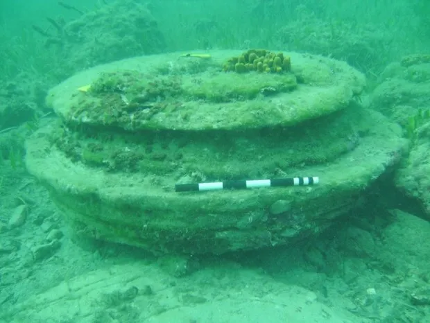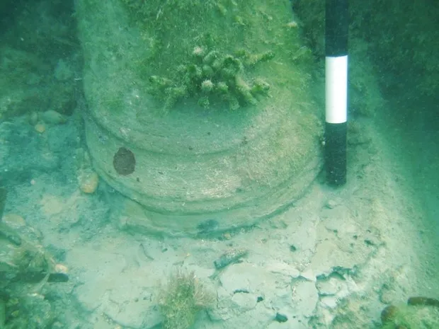 雅典大学潜入希腊的浅水区扎金索斯岛,你会遇到一个令人毛骨悚然的景象:柱子、管道、像人行道一样的石板,以及其他似乎是一个早已沉入海底的社区的遗迹。