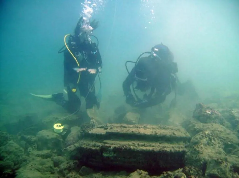 雅典大学潜入希腊的浅水区扎金索斯岛,你会遇到一个令人毛骨悚然的景象:柱子、管道、像人行道一样的石板,以及其他似乎是一个早已沉入海底的社区的遗迹。