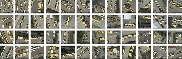 匹兹堡的校车。Terrapattern/Flickr搜索该平台令人上瘾,并且有一种奇妙的吸引力:从上方看,匹兹堡的校车在车库中排成一排,看起来像一排粉笔。