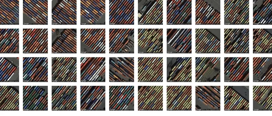 旧金山的运输集装箱。Terrapattern/Flickr想想从飞机上的视角:风景被整齐地划分为农田的瓷砖,公路环形交叉口像孩子的涂鸦一样绘制在地面上,城市摩天大楼顶部点缀着屋顶花园。这一切都有一种令人满意的模式。