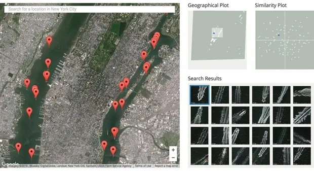 在纽约市水域中搜索船只波浪。Terrapattern/Flickr开发者向Terrapattern提供了数十万张来自OpenStreetMap的卫星图像,教系统学习识别特定地点或特征的重要视觉线索。该平台包含大量数据——每个大都市区至少需要10GB的RAM作为活动内存。卡内基梅隆大学教授戈林·莱文表示,它将模式合成成具体的、可搜索的数据点,他与大卫·纽伯里、凯尔·麦克唐纳以及学生艾琳·阿尔瓦拉多、阿曼·蒂瓦里和曼齐尔·扎希尔共同开发了Terrapattern。