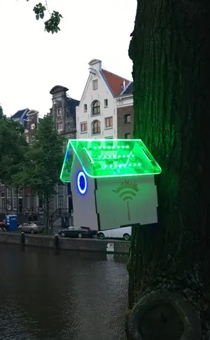 因为 TreeWiFi 仍处于开发阶段,Lam 和他的同事们只在办公室附近安装了一个鸟屋,他们白天进行测试,晚上拆除。到九月份,他们的团队将推出一个最终模型。他们的目标是将五个单位分发到阿姆斯特丹空气污染最严重的社区,希望有一天能为城市的每条街道配备。
